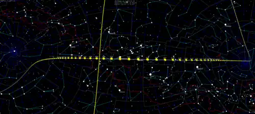 ![]() Camillo's south to north daily motion in the sky as seen from the earth |