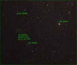- ^ "AstDys (39) Laetitia Ephemerides". Department of Mathematics, University of Pisa, Italy. Archived from the original on 27 March 2012. Retrieved 26 June 2010.