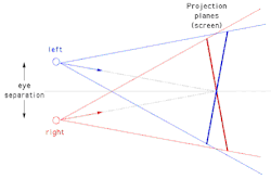 A 3D stereo view is the viewing of objects through any stereo pattern.