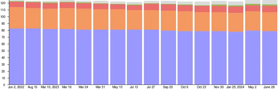 | Total members | 124 | 123 | 124 | 123 | 122 | 121 | 123 | 122 | 123 | 122 | 124 | 123 | 124 | ||||||