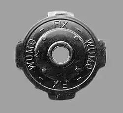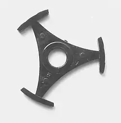 A 45 rpm adapter (also known as a 45 rpm record insert, 45 rpm spindle adapter, spider, or 7-inch adapter in reference the usual size of a 45 rpm record) is a small plastic or metal insert that goes in the middle of a 45-rpm record so it can be played on the standard size spindle of a turntable. The adapter may be a small solid circle that fits onto the spindle (meaning only one 45 could be played at a time) or a larger adapter that fits over the entire spindle of a record changer, permitting a stack of 45s to be played. These larger adapters allowing multiple records to be played are often referred to as 45 spindles. A few manufacturers instead supplied a complete spindle change for 45s.