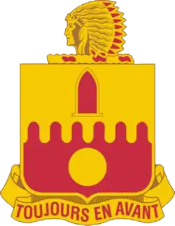 In 1968, the division was disbanded and the 45th Infantry Brigade (Separate) was formed in its place.[6] The 45th Brigade assumed all of the 45th Division's lineage and campaign participation credit, including its shoulder sleeve insignia featuring a Thunderbird, a common Native American symbol, as a tribute to the south-western United States region which had a large population of Native Americans.[7] The brigade also assumed the division's nickname, "Thunderbirds".[1] The division's three subordinate brigades were disbanded as a part of the organization, and were not affiliated with the 45th Infantry Brigade (Separate).[8] The brigade's headquarters was subsequently relocated to Edmond, Oklahoma.[6] In 1971 the brigade received its distinctive unit insignia.[7]