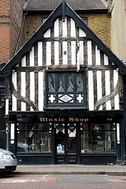46 South End, located in South Croydon, is Croydon's oldest surviving shop. The building is Grade II listed, dating back to the 17th century. The building retains its original timber framing and the front has distinctive and attractive elevations. The rear of the building is partly of modern construction.[1] Since 1985 it has been home to Just Flutes, a music shop.