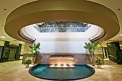 The complex consists of a 16-story office tower, upscale retail shops on three levels 185,000-square-foot (17,200 m2), and a parking structure.[1]