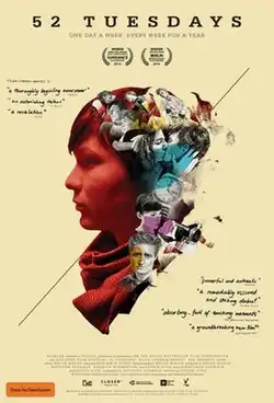 52 Tuesdays is a 2013 Australian coming-of-age drama film directed by Sophie Hyde, with the screenplay written by Matthew Cormack and story by Cormack and Hyde. The film centres on a teenage girl dealing with the gender transition of a parent. The film showed at the 2014 Sundance Film Festival,[2] where it was not only nominated for the Grand Jury Prize, but won the Best Director Award. Over the following year it won numerous other awards and garnered global critical acclaim.