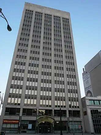 The Brutalist style building was built in 1966 during the New Newark era by the Mutual Benefit Life Insurance Company and the George A. Fuller Company and was once known as the Fidelity Union Building, after the company which occupied it.[7] In 2000, the Heritage Capital Group purchased the tower and implemented a multimillion-dollar renovation-modernization in 2001, winning the state's Building of the Year award. While Heritage sold 80% interest in 550 Broad Street in 2005, it retains 20 percent ownership and acts as executive operating partner and on-site manager.[8][9] The company also renovated nearby 570 Broad Street.[10] As of 2012 the major tenant for the building is IDT, which is owner of the nearby Mutual Benefit Life Building.[11]