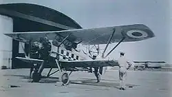 On 31 March, No. 56 Squadron received orders to relocate to the RFC HQ at Saint-Omer, France.[7] By 8 April, the entire Squadron had made the move from London Colney, with the pilots having their photograph in their S.E.5s taken before they left on the 7 April.[6] From Saint-Omer, the squadron relocated to Vert Galant on 20 April to support the Second Battle of Arras and flew their first mission on the 22 April. Its arrival at the front with the latest fighter, combined with the unusually high proportion of experienced pilots in its ranks, led to rumours among its German opponents that the squadron was an 'Anti-Richthofen Squadron', specifically dedicated to the removal of the Red Baron.[7] The squadron did shoot down and kill Richthofen's nearest 1917 rival Leutnant Werner Voss in an epic dogfight, on 23 September 1917 by Lieutenant Arthur Rhys-Davids. Albert Ball scored No. 56 Squadron's first kill, his 32nd, on 23 April, when he shot down an Albatros D.III. The squadron suffered its first loss on 30 April when Lieutenant Maurice Alfred Kay was shot down. Ball himself was killed in action on 7 May, the same day as Lieutenant Roger Michael Chaworth-Musters.[7]