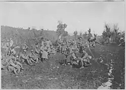 - 5 May - 28 August : movement of the division towards the Kroucha-Balkan, preparation of the Dova-Tépé position (between Anatoli, Serres & Sugovo (Platanakia, Serres) ), Botkova lake (Lake Kerkini). Engagement on the southern slopes of the Bélèch mountain ridge (near Nikoliḱ), during the battle of Doiran (1916). The division's 113th Brigade was reinforced by the Groupe Léger of six dismounted cavalry squadrons,[5] which equated to the strength of an infantry battalion.[6]