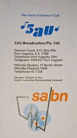 Radio 5AU 97.9 MHz FM is a South Australian radio station broadcasting a classic hits format from its transmitter site at The Bluff into the Whyalla, Port Augusta, Port Pirie, Kadina, Moonta and Wallaroo area and north into the Flinders Ranges.