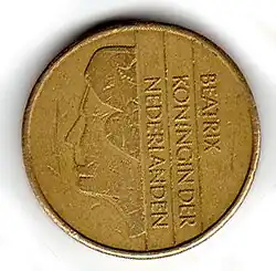 The Dutch Five guilder coin was the highest-denomination coin in the Netherlands from its introduction in 1988 until the adoption of the euro in 2002. Its nominal value was ƒ 5,- (€ 2.27).