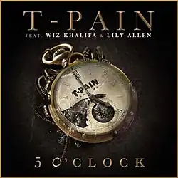 "5 O'Clock" is a song by American singer T-Pain featuring American rapper Wiz Khalifa and British singer Lily Allen, which serves as the second official single from the former's fourth studio album, Revolver. It peaked at number ten on the Billboard Hot 100, becoming Allen's first top ten single in the United States.
