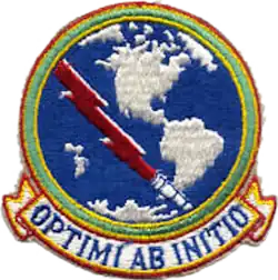 The 902d Air Refueling Squadron was activated in May 1958 at Clinton-Sherman Air Force Base, Oklahoma, by Strategic Air Command (SAC), but it apparently did not receive its Boeing KC-135 Stratotankers until the spring of 1959.[7] It became the refueling component of the 4123d Strategic Wing when the wing moved from Carswell Air Force Base, Texas, in a SAC program to disperse its Boeing B-52 Stratofortress bombers over a larger number of bases, thus making it more difficult for the Soviet Union to knock out the entire fleet with a surprise first strike.[8] The squadron operated Boeing KC-135 Stratotankers, providing air refueling support to the Boeing B-52 Stratofortress strategic bombers of its parent wing and other USAF units. Starting in 1960, one third of the squadron's aircraft were maintained on a fifteen-minute alert, fully fueled and ready for combat, to reduce vulnerability to a Soviet missile strike. This was increased to half the squadron's aircraft in 1962.[9]