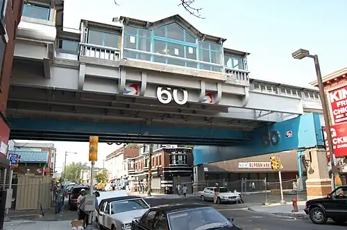 60th Street station is an elevated rapid transit station on the SEPTA Metro L, located at the intersection of 60th Street and Market Street in Philadelphia, Pennsylvania. The station straddles the line between two West Philadelphia neighborhoods, Haddington to the north and Cobbs Creek.