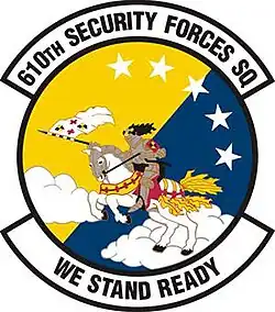The 610th Security Forces Squadron (610 SFS) was a United States Air Force Reserve unit located at the Naval Air Station JRB Fort Worth. The unit was unique as it did not serve a law enforcement purpose on the base, but instead focuses on combat readiness. The unit was originally designated AFRES Ground Combat Readiness Center and was re-designated 610 SFS in November 1995.[2] The 610th SFS officially shut its doors on 1 October 2015, due to the federal budget for FY 2016. Most of the traditional reservists merged with the 301st Security Forces Squadron, which is located on the same installation.[3]