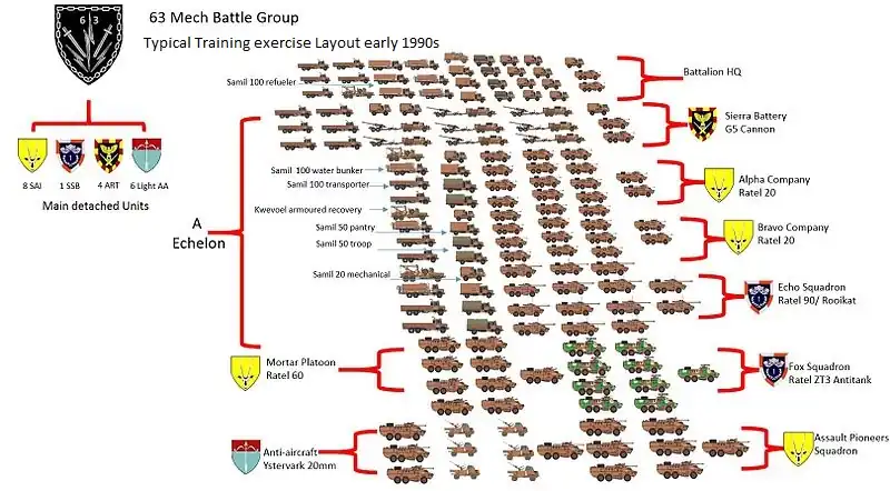 By 1994, the 63 Mech nomenclature was totally abandoned. The battlegroup principles however continue to be utilised in the current SANDF's training program as and when the need arises.