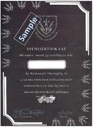 63 Mech Group withdrew with the majority of SADF Forces from Namibia on 31 November 1989.