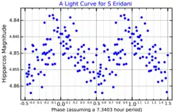 - ^ a b Rodríguez, E.; Breger, M. (January 2001), "delta Scuti and related stars: Analysis of the R00 Catalogue", Astronomy and Astrophysics, 366: 178–196, Bibcode:2001A&A...366..178R, doi:10.1051/0004-6361:20000205.