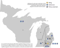 - ^ Political parties were in flux early in the Second Party System. Affiliations for each individual are more general indicators of their politics, but they may not have had a declared allegiance during the Territorial Council.