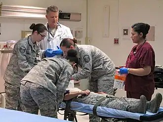 ![]() Members of the 79th Medical Wing care for a simulated trauma victim during training at Joint Base Andrews | |