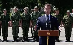 The base originated from the 131st Separate Motor Rifle Brigade, which was a unit of the Soviet Army and of the Russian Ground Forces. Following the Russo-Georgian War of 2008, it was decided that a permanent Russian military base was needed.[3] On 1 February 2009, the brigade was reorganized and the 7th Krasnodar Red Banner Order of Kutuzov and Red Star Military Base was established. On 17 February, Russian President Dmitry Medvedev and Abkhazian leader Sergey Bagapsh signed an agreement on a unified Russian military base on the territory of Abkhazia.[4][5]