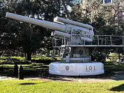 Spanish–American War Memorial, Plant Park, University of Tampa, Tampa, Florida. 8-inch M1888MIA1 No. 32 Watervliet, railroad gun originally from Battery Bowyer, Fort Morgan, Alabama.
