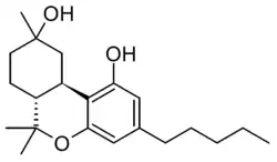 9-Hydroxyhexahydrocannabinol (9-OH-HHC) is a semi-synthetic derivative of tetrahydrocannabinol. It is formed as an impurity in the synthesis of Delta-8-THC,[1] and retains activity in animal studies though with only around 1/10 the potency of Δ9-THC, with the 9α- and 9β- enantiomers having around the same potency.[2]