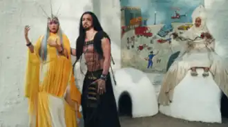The accompanying music video was directed by Tarsem Singh and features a surreal dreamscape and a twist ending. It was directly inspired by Ken Russell's short film "Nessun dorma" (1987),[1] and contains references to the Armenian film director Sergei Parajanov's 1969 Soviet art film The Color of Pomegranates. The song received several remix versions, including one by Charli XCX and A.G. Cook on Gaga's remix album, Dawn of Chromatica (2021). Gaga performed "911" at the 2020 MTV Video Music Awards and The Chromatica Ball concert tour (2022).