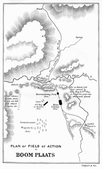 In April 1842 the regiment formed a reserve battalion.[33] The 1st Battalion took part in various actions in the 7th Xhosa War during 1846[34] and left South Africa for home in January 1848.[34] Meanwhile, the Reserve Battalion also took part in the 7th Xhosa War during 1846,[35] then saw action against the Boers at the Battle of Boomplaats in August 1848[36] and went on to fight in the 8th Xhosa War during 1850.[37] The Reserve Battalion left South Africa in July 1855[38] and continued life in the form of a series of depot companies until being formally disbanded in March 1857.[39]