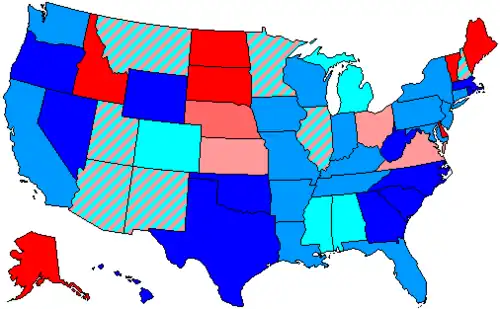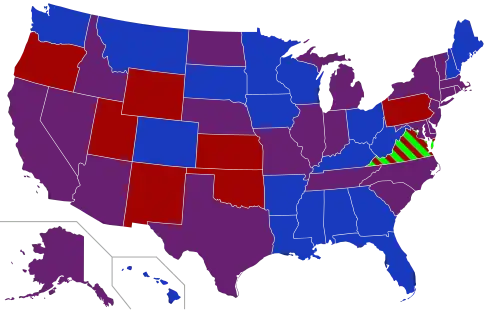 - ^ a b c d e f g h i The Minnesota Democratic–Farmer–Labor Party (DFL) and the North Dakota Democratic-Nonpartisan League Party (D-NPL) are the Minnesota and North Dakota affiliates of the U.S. Democratic Party and are counted as Democrats.