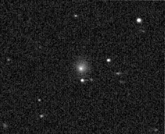 97P/Metcalf–Brewington is a periodic Jupiter-family comet originally discovered by Joel H. Metcalf in 1906 but subsequently lost.[6] A new observation in 1991 by Howard J. Brewington was matched to the 1906 sighting; the orbit was computed and the comet was observed again on its returns to perihelion in 2001, 2011, and 2022.[6]