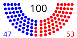 | Beginning of next congress | 46 | 0 | 54 | 100 | 0 |