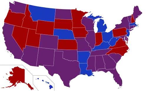 - ^ a b c d e f g The Minnesota Democratic–Farmer–Labor Party (DFL) and the North Dakota Democratic-Nonpartisan League Party (D-NPL) are the Minnesota and North Dakota affiliates of the U.S. Democratic Party and are counted as Democrats.