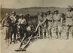 The tenentist campaigns in Mato Grosso, starting in 1924, attracted attention in the press, even under a state of emergency.[116] The army's image in the region suffered, as conscription failed to provide adequate mobilization, and the government continued to rely on the "patriotic battalions" of the local oligarchs.[117] Materiel shortages and a deficit of officers and troops persisted throughout the decade.[118] On the other hand, the campaigns drew federal investments, and the CMMT received its first military trucks; until then, it had depended on the requisitioning of private vehicles.[119]