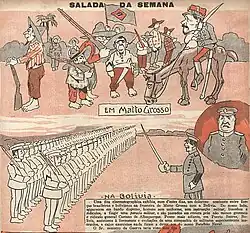 The police forces of Mato Grosso were not strong enough to rival the army, unlike the "state armies" in stronger states.[41] In states like Minas Gerais and São Paulo, military officers were largely excluded from partisan politics. However, in Mato Grosso—a politically minor state dependent on the federal government—officers had a long history of holding public office. Their social status and prestige were comparable to those of officers in Rio Grande do Sul, where they engaged in local political disputes through alliances and family ties.[42][41][43] The local government was led by military personnel for much of the Brazilian Empire and on five occasions during the Republic.[44]