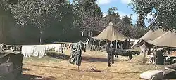 In addition, with tents were used for billeting and also for support facilities; an access road was built to the existing road infrastructure; a dump for supplies, ammunition, and gasoline drums, along with a drinkable water and minimal electrical grid for communications and station lighting.[2]
