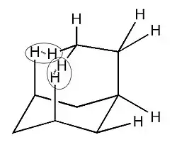 Steric effects play a major role in the assignment of configurations in cyclohexanes. One can use steric hindrances to determine the propensity of a substituent to reside in the axial or equatorial plane. It is known that axial bonds are more hindered than the corresponding equatorial bonds. This is because substituents in the axial position are relatively close to two other axial substituents. This makes it very crowded when bulky substituents are oriented in the axial position. These types of steric interactions are commonly known as 1,3 diaxial interactions.[2] These types of interactions are not present with substituents at the equatorial position.