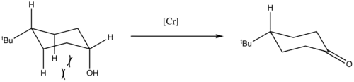 One of the original experiments performed by Winston and Holness was measuring the rate of oxidation in trans and cis substituted rings using a chromium catalyst. The large tert-butyl group used locks the conformation of each molecule, placing it equatorial (cis compound shown).