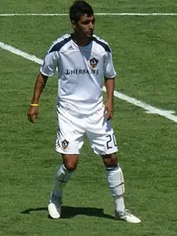 DeLaGarza was drafted in the second round (19th overall) of the 2009 MLS SuperDraft by LA Galaxy. He made his professional debut on March 22, 2009, in Galaxy's first game of the 2009 MLS season against D.C. United, playing the whole 90 minutes at left back in a 2–2 draw.[6] Following Sean Franklin's mid-season hamstring injury, DeLaGarza played many games at the right side of Galaxy's defense, starting 16 consecutive games at right back before missing a game due to injury. He would ultimately clock 1,754 minutes in his rookie season. DeLaGarza picked up his first career assist on July 11, sending in a cross that Edson Buddle headed past the Chivas USA keeper to give the Galaxy a 1–0 win.[5] DeLaGarza scored his first goal for LA in a 6–3 loss against FC Dallas on September 12, 2009.[7] He helped the Galaxy defense concede 31 fewer goals than in 2008 and set a club record for clean sheets in a season with 12. The strengthened defense helped LA finish first in the Western Conference. DeLaGarza would make two appearances in the playoffs as the Galaxy would go onto reach MLS Cup, where they lost to Real Salt Lake.[8]