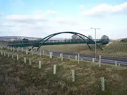 South of the M20, the route again diverts onto a 2006 bypass to the west of the old route village,[5] which then passes under the A20 (a road that it used to meet) and then joins the West Malling Bypass, which was built in 1988[6] then upgraded to dual carriageway in the 2000s.