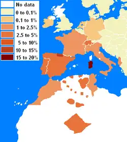 - ^ a b c Grimaldi MC, Crouau-Roy B, Amoros JP, et al. (November 2001). "West Mediterranean islands (Corsica, Balearic islands, Sardinia) and the Basque population: contribution of HLA class I molecular markers to their evolutionary history". Tissue Antigens. 58 (5): 281–92. doi:10.1034/j.1399-0039.2001.580501.x. PMID 11844138.