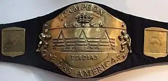 The AAA Americas Trios Championship was a six-man tag team title contested for in the Mexican lucha libre promotion AAA. The last recorded title defense for Los Villanos (Villano III, Villano IV and Villano V) was in 1997; no official announcement has been made but the title was quietly eliminated at some point after 1997 when Los Villanos stopped working for AAA. Being a professional wrestling championship, it was not won legitimately: it is instead won via a scripted ending to a match or awarded to a wrestler because of a storyline.