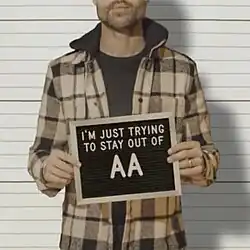 "AA" is a song that conveys Hayes' anxiety as a dad and his love for wife, as well as his sobriety.[2] In a press release, he said: "I've struggled with alcohol abuse and sometimes I wish I didn't need AA, but I do. I think a lot of people can relate to that".[3] In an interview with Celebsecrets, Hayes called it as "A Dad-Anthem".[4] Chris Parton of Sounds Like Nashville described the song as a "chasing his dreams while juggling fatherhood, marriage and his all-too relatable vices".[5]