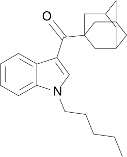 - ^ a b Banister SD, Wilkinson SM, Longworth M, Stuart J, Apetz N, English K, Brooker L, Goebel C, Hibbs DE, Glass M, Connor M, McGregor IS, Kassiou M (July 2013). "The synthesis and pharmacological evaluation of adamantane-derived indoles: cannabimimetic drugs of abuse". ACS Chemical Neuroscience. 4 (7): 1081–92. doi:10.1021/cn400035r. PMC 3715837. PMID 23551277.
