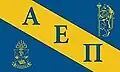 AEPi's motto is "Developing Leadership for the Jewish Community".[10] Its badge is the Greek letters ΑΕΠ, arranged horizontally in gold and studded with pearls.[11] The fraternity's colors are gold and blue.[11] Its mascot is the lion. Its flower is the fleur-de-lis. Its publication is The Lion.