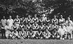 In May 1943, serving in the Territory of Papua during the New Guinea campaign began an informal league which were among the earliest recorded matches in Papua New Guinea. The league consisted of teams including Konedobu, Wirraways, Razorback, Strafers, Wallabies, Pioneers, Bower Birds, Ack-Redians, John's Gully.[4][5] On 29 April 1943, an RAAF team held a secret training session.[6] Its first match was held that weekend on the 1st May.[7] Another higher profile match was held on the 5 May 1943 featuring several notable Australian players.[8] On Saturday 22 May 1943, RAAF Wirraways 13-10 defeated Razorback 9–8.[9] On the 30 May 1943, John's Gully R.A.A.F. Australian Rules football team against a Waigani Road team at the Gully Oval, the R.A.A.F. Wirraway Australian Rules football team also called for opponents.[10] Other teams included Regiment and Con. Depot.[11]