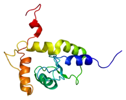- ^ a b Doria M, Salcini AE, Colombo E, Parslow TG, Pelicci PG, Di Fiore PP (December 1999). "The eps15 homology (EH) domain-based interaction between eps15 and hrb connects the molecular machinery of endocytosis to that of nucleocytosolic transport". J. Cell Biol. 147 (7): 1379–84. doi:10.1083/jcb.147.7.1379. PMC 2174238. PMID 10613896.