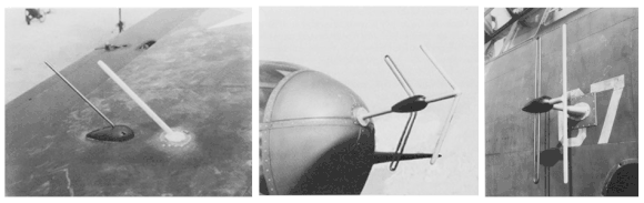 Instead, a system of multiple receiver antennas was adopted, each one located so that only a certain section of the sky was visible. Two horizontal receivers were mounted on either side of the fuselage and only saw reflections from the left or right, slightly overlapping in the middle. Two vertical receivers were mounted above and below the wing, seeing reflections above or below the aircraft.[50]