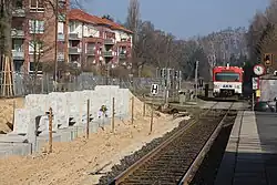 The construction of a connecting line to the airport is not supported by the Schleswig-Holstein state government because of the considerable cost burden of at least €150 million.[3] The state instead has focused on the upgrade of the existing line of the AKN between Eidelstedt, Quickborn and Kaltenkirchen, allowing it to be operated by both the AKN and the Hamburg S-Bahn. Both companies are interested in operating the route.[4][5] Particularly with regard to preservation of working places a very close co-operation is planned.[6] In preparation for a possible extension of the S-Bahn network, the section from Halstenbeker Straße to the border near Burgwedel station was duplicated up to 2013 and a new Schnelsen Süd station is planned after the Bönningstedt–Quickborn section has been fully duplicated. AKN has called in the past for the establishment of an all-day grade-separated connection from Eidelstedt to Hamburg Hauptbahnhof, but this failed because it would lead to increased operating costs and because of the limited capacity of the line. An extension of the S-Bahn line would at least overcome the capacity issue. Current status provides a completion of the planning process ("new S21") in 2017 and start of operation in 2020.[7] After the last state election (2015) the extension plans are part of the coalition plan.[8]
