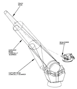 The AN/SPG-55B antenna assembly consists of two separate antennas: the main antenna, which provides the track beam, guidance beam, and cwi beam, and the capture antenna, which provides the capture beam. The capture-guidance mode is employed for control of beam-riding missiles, and the track cwi mode is used for semi-active radar homing (SARH) missiles.[5]
