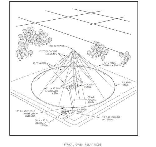 The Ground Wave Emergency Network (GWEN) was a US Air Force command and control communications system, deployed briefly between 1992 and 1994, intended for use by the United States government to facilitate military communications before, during and after a nuclear war. Specifically, the GWEN network was intended to survive the effects of an electromagnetic pulse from a high-altitude nuclear explosion and ensure that the United States President or their survivors could issue a launch order to Strategic Air Command bombers by radio.[1][2][3]